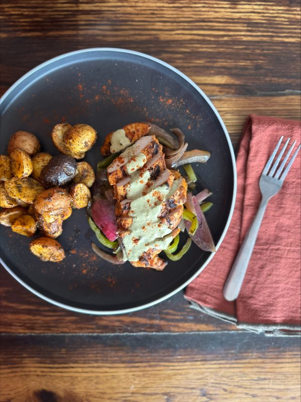 Savor a Latin-inspired favorite with our Pollo Con Papas, featuring seasoned grilled chicken breast, served with cilantro-lime roasted potatoes, Fajita Veggies and finished with a creamy, spicy Peruvian green sauce made in-house. It’s clean comfort with just the right kick.