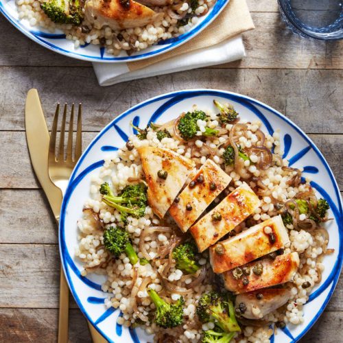 Sorrento Chicken & Cous CousItalian-marinated grilled chicken breast served with fluffy cous cous and a colorful vegetable medley for a light, balanced, high-protein meal.