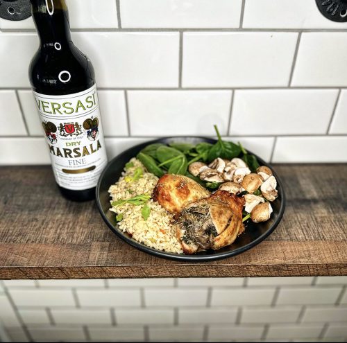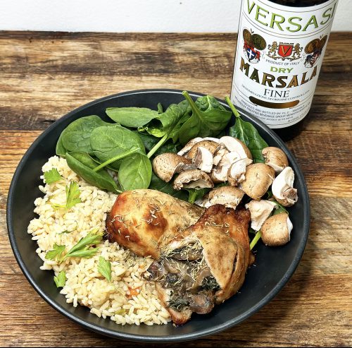 Marsala Mushroom Stuffed Chicken – Tender, all-natural chicken breast stuffed with sautéed mushrooms in a rich marsala wine sauce for a gourmet, protein-packed meal that satisfies.