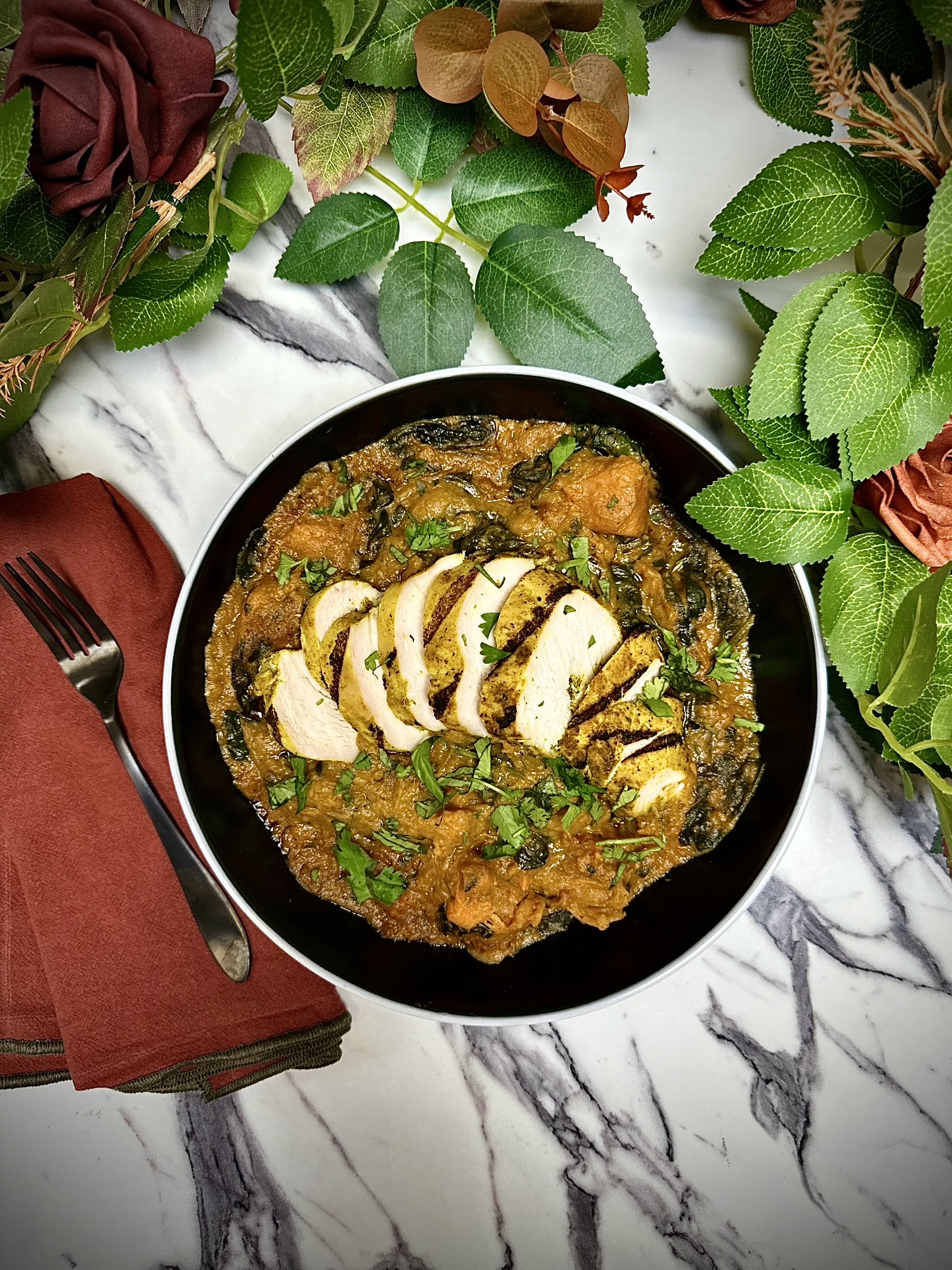 Cozy up with our Sweet Potato Peanut Curry, featuring tender chicken and sweet potatoes in a creamy, nutty sauce for a flavorful, comforting meal.